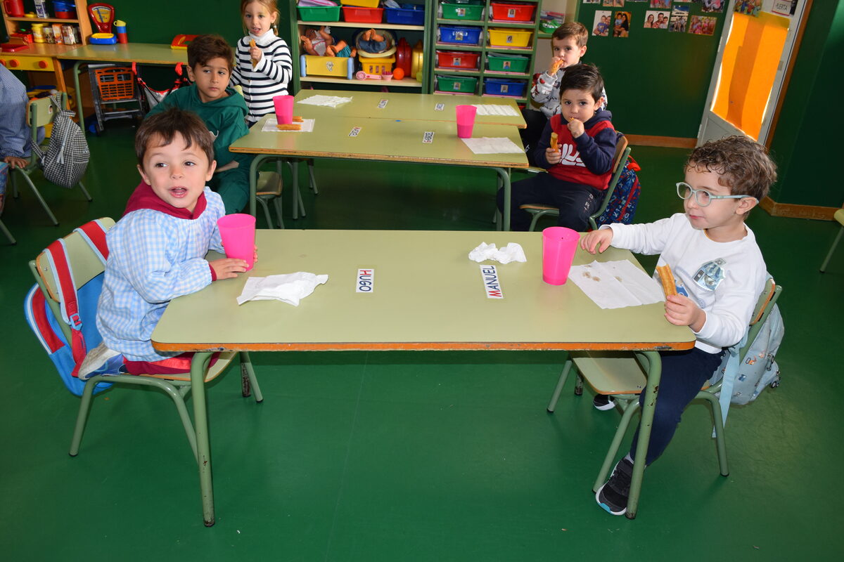 El alumnado de Educación Infantil, a través de manualidades, canciones y pequeños juegos, los más pequeños trabajaron la figura de sus maestros y maestras, expresando el cariño y la admiración que sienten por ellos. Muchas clases elaboraron dibujos y murales que ya decoran los pasillos del colegio.